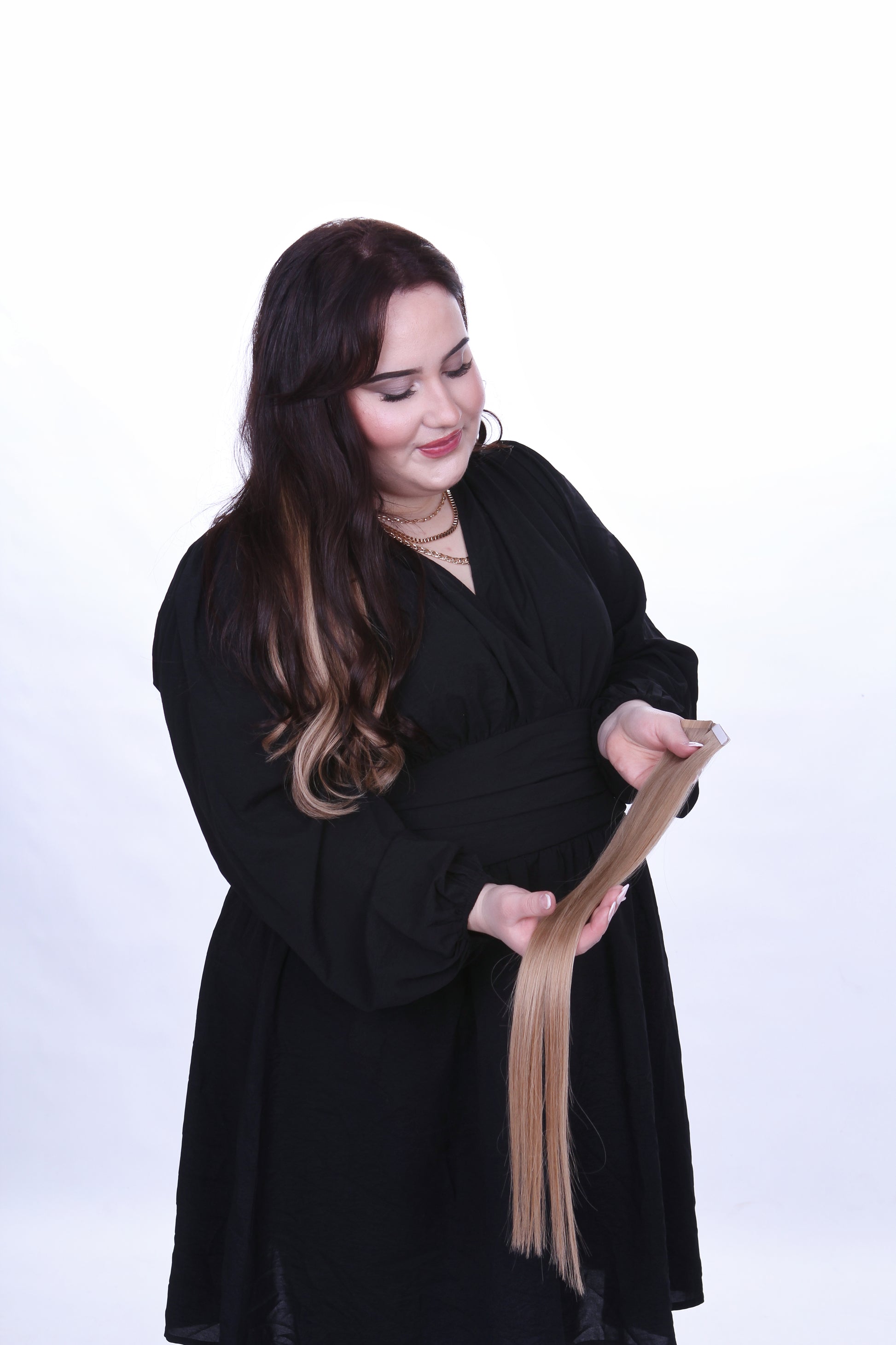 Verwandeln Sie Ihr Haar in purer Perfektion mit unseren exklusiven Tape-In Extensions aus 100 % malaysischem Echthaar. Für natürliches Volumen, traumhafte Länge und einen Look, der dich strahlen lässt.